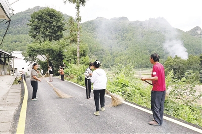 图为村民们清扫新升级改造的沥青路面。