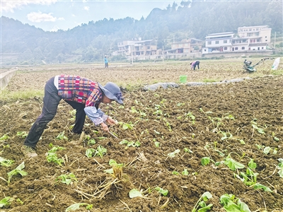 村民在移栽油菜秧苗