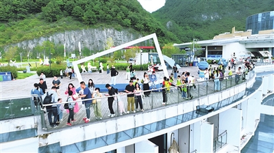 黔东南州游客刘富蓉对记者说:“之前也看过关于‘天空之桥’景区的新闻,就想趁着国庆带着小朋友来看一看,开拓一下眼界,感受中国‘基建狂魔’的魅力。”