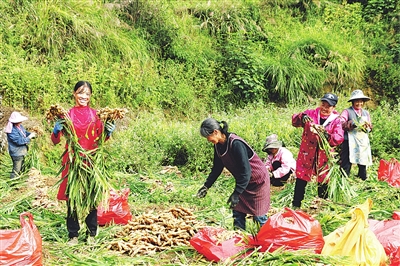 图为群众采收生姜实现经济增收的喜悦心情。