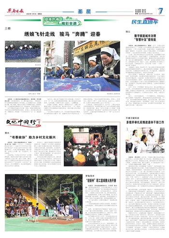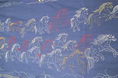 本报讯 (三都自治县融媒体中心 陈明珠 苏沛柔 张义坤) 马年新春将至,在三都水族自治县,一群深谙千年马尾绣技艺的绣娘正飞针走线,以马尾缠丝为芯,彩线填充为辅,精心绣制一幅长约5米的《奔腾骏马图》马尾绣长卷,以水族独特而隆重的方式,喜迎新春,礼赞幸福生活。