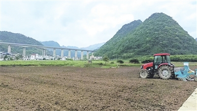 在绿茵湖街道邦水村供销社示范性高粱实验种植基地,空中衔接无人机飞防除草,地上多功能旋耕施肥播种一体化的播种机,按照预先设定的线路同时完成旋耕、播种、施肥、覆土等作业,来回之间,待垦的土地瞬间变得松软,肥料、高粱种子均匀地播撒入土。这是都匀市优化农业产业结构以来,首个将高粱产业从耕、种、管、收全程采用机械化作业的基地。