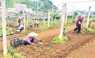 图为村民在州老科协果药基地劳作。 赵天恒 摄