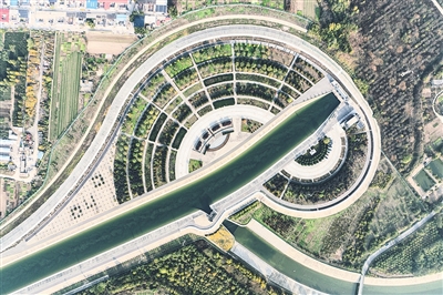 这是11月7日在石家庄市拍摄的滹沱河倒虹吸工程(无人机照片)。