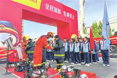 今年的消防宣传月活动主题为“全民消防 生命至上”。活动现场,各类消防主题元素随处可见:化工专业队建设成果展板展示区、水枪出水打靶体验区、消防战斗服穿戴体验区……各展示体验区人头攒动,大家有序参观消防救援车辆和器材装备展示,并在各类活动区域进行沉浸式互动体验。