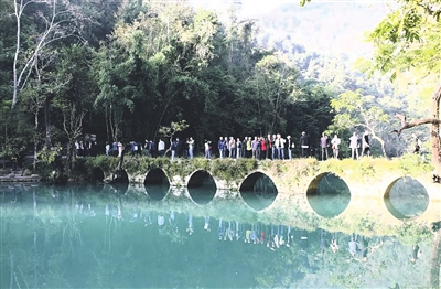 在荔波小七孔景区,考察团深度参观体验了小七孔桥、六十八级跌水瀑布、翠谷瀑布、卧龙潭等热门景点,一路走一路拍,眼前的美景给他们留下了深刻印象。
