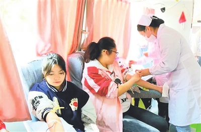 无偿献血是奉献爱心、传递爱心,广大师生用实际行动,诠释关爱社会和无私奉献的精神,以青春热血彰显新时代青年的责任与担当。图为师生们正在献血。