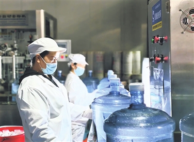 去年12月,完成技改升级后,这条全自动生产线每小时可生产2400桶饮用水,产能较改造前提升了一倍。