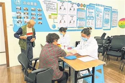 “下一步,我们将依托体重管理门诊服务,深化管理方案,直击疾病溯源,同时利用智能终端实时监测健康数据,联合上级医院组建家庭医生团队定期服务,提升管理水平。同时加大健康宣传力度,通过‘健康积分’激励机制提升老年人参与率,构建覆盖全周期的健康管理体系。”金山社区卫生服务中心相关负责人说。图为医务人员正在为老人体检。