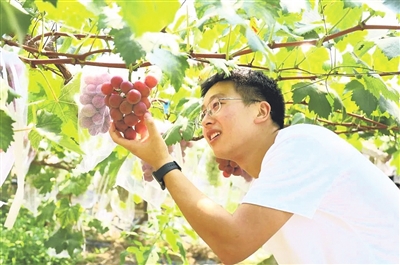 “基地里82亩葡萄已基本成熟,有阳光玫瑰、富士之辉、摩尔多瓦、妮娜皇后等品种。”种植大户黄光林介绍,基地采用无公害种植模式,坚持施用农家肥,产出的葡萄香甜如蜜、脆甜爆汁。目前通过零售、批发、电商等多渠道销售,预计今年产量达8万公斤,收入可达90多万元。