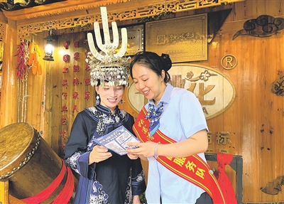 近日,建行黔南州分行组织开展“多彩非遗 金智惠民”活动,该行青年员工走进三都水族自治县万户水寨,参与非物质文化遗产马尾绣的制作。