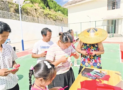 图为群众体验剪窗花。