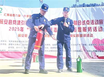 活动现场,专业技能演示环节备受关注。县人民医院志愿服务队现场演示海姆立克急救法、心搏骤停抢救及气道异物梗阻处理等急诊急救技能,通过分解动作、讲解要领,帮助群众掌握实用自救互救技能。县蓝焰黔行消防志愿服务队联合映山红社区“三红义警”志愿服务队开展了消防安全实操演练,模拟火情处置,演示灭火器正确使用方法,切实提升居民火灾应对能力。