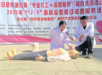 本报讯 (瓮安县融媒体中心 赵才旭) 为大力弘扬“奉献、友爱、互助、进步”的志愿精神,充分展现党建引领“专业社工+志愿服务”融合试点工作成效,近日,瓮安县举行了融合试点活动展演暨2025年“12·5”国际志愿者日志愿服务活动。