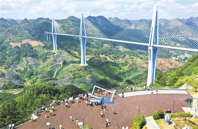 贵州交投集团天空之桥服务区工作人员程晓东说:“‘十四五’期间,我们重新定义服务区,借助世界级大桥特有的景观资源,在服务区内植入了休闲、观光、科普等功能,实现了从‘过路经济’到‘停留经济’的质变。”