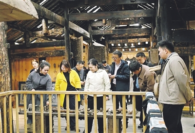 当天,与会人员深入尧古村开展实地调研,察看村落布局、生态环境、文化资源及特色农业产业情况,通过院坝会的形式听取村民代表关于乡村建设、产业发展等方面的意见建议,为后续深化校地合作、推进乡村振兴摸清实际底数。在邓恩铭烈士故居,贵州大学师生代表开展“重走红色足迹·践行初心使命”主题活动,参观红色文化基地,重温入党誓词,牢记初心使命。座谈会上,荔波县详细介绍了尧古村党建工作推进成效与乡村振兴实践进展情况,贵州大学专家学者立足专业所长,聚焦乡村发展关键领域讲授微党课,充分发挥学校在建筑与城市规划、历史与民族文化等领域的智力与人才优势,精准梳理尧古村在传统村落保护与旅游产业发展中面临的痛点难点,找准校地合作契合点,以党建联建为纽带,为尧古村产业升级、文化传承、规划建设等工作提出精准务实的思路与建议,赋能尧古村产业提质增效,助力乡村产业蓬勃发展。