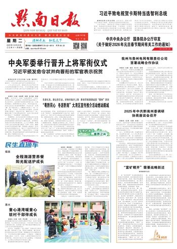 黔南日报一版要闻01习近平致电祝贺卡斯特当选智利总统 2025-12-23 2 2025年12月23日 星期二