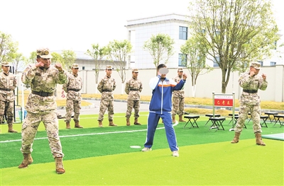 “你们很棒,很帅,加油!”当天,官兵们用手语热情欢迎两个孩子的到来,并带领孩子们参观枪械等各类装备,耐心比画讲解用途和性能,让他们近距离触摸感受。随后,手把手教孩子们格斗基础动作,展示刚劲有力的军体拳,带领他们体验各项训练,并全程细心守护。